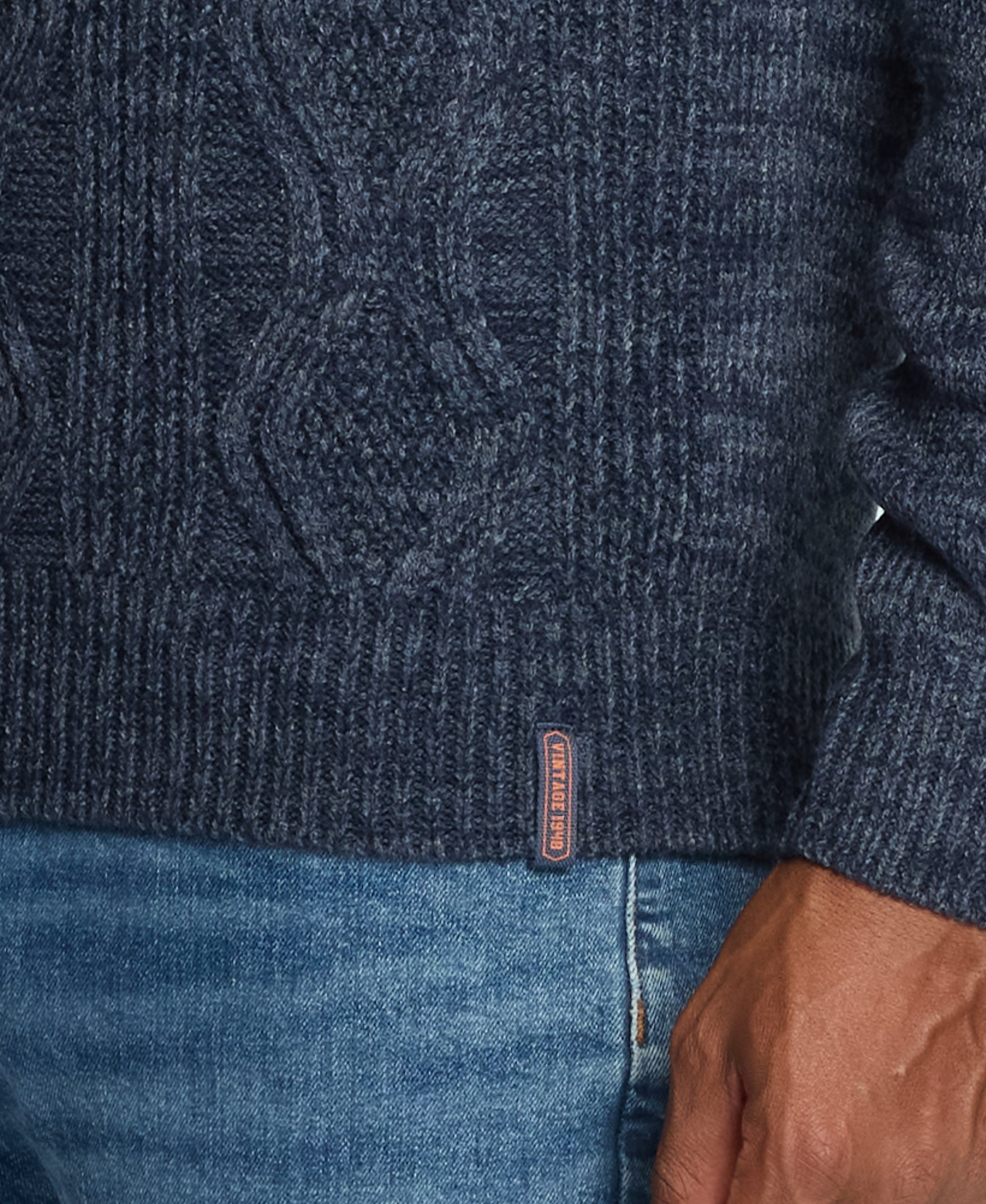 The Aran cable stitch represents a fisherman's ropes and signifies the wish for safety and good fortune at sea. Our shawl collar version is made with a relaxed silhouette and understated vintage touches.