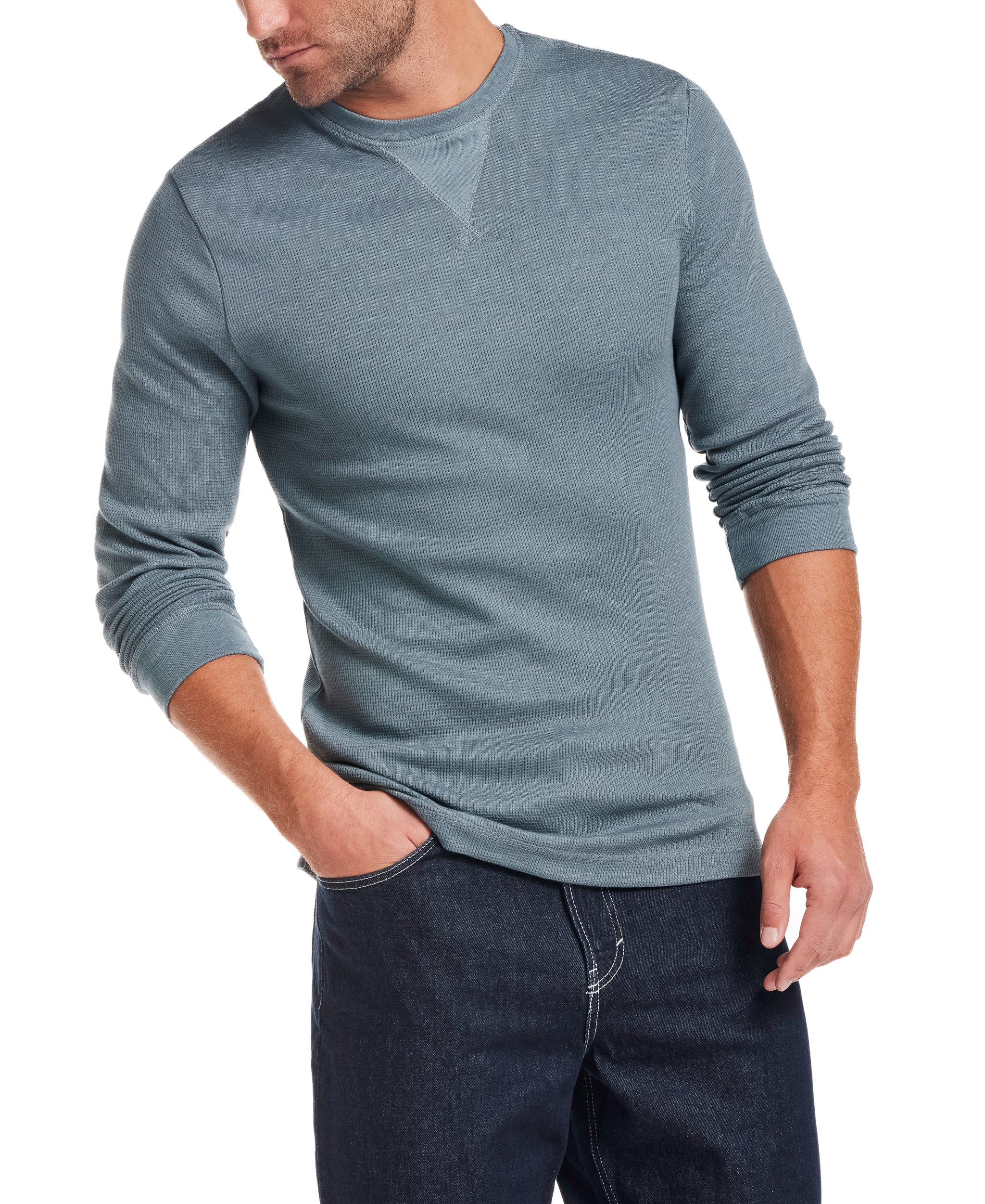 A versatile crewneck designed for comfort and ease, this long-sleeve thermal knit is built from soft, breathable cotton with a touch of stretch. Finished with classic ribbed cuffs and a V-notch detail at the collar, it’s a dependable layer for everyday wear.