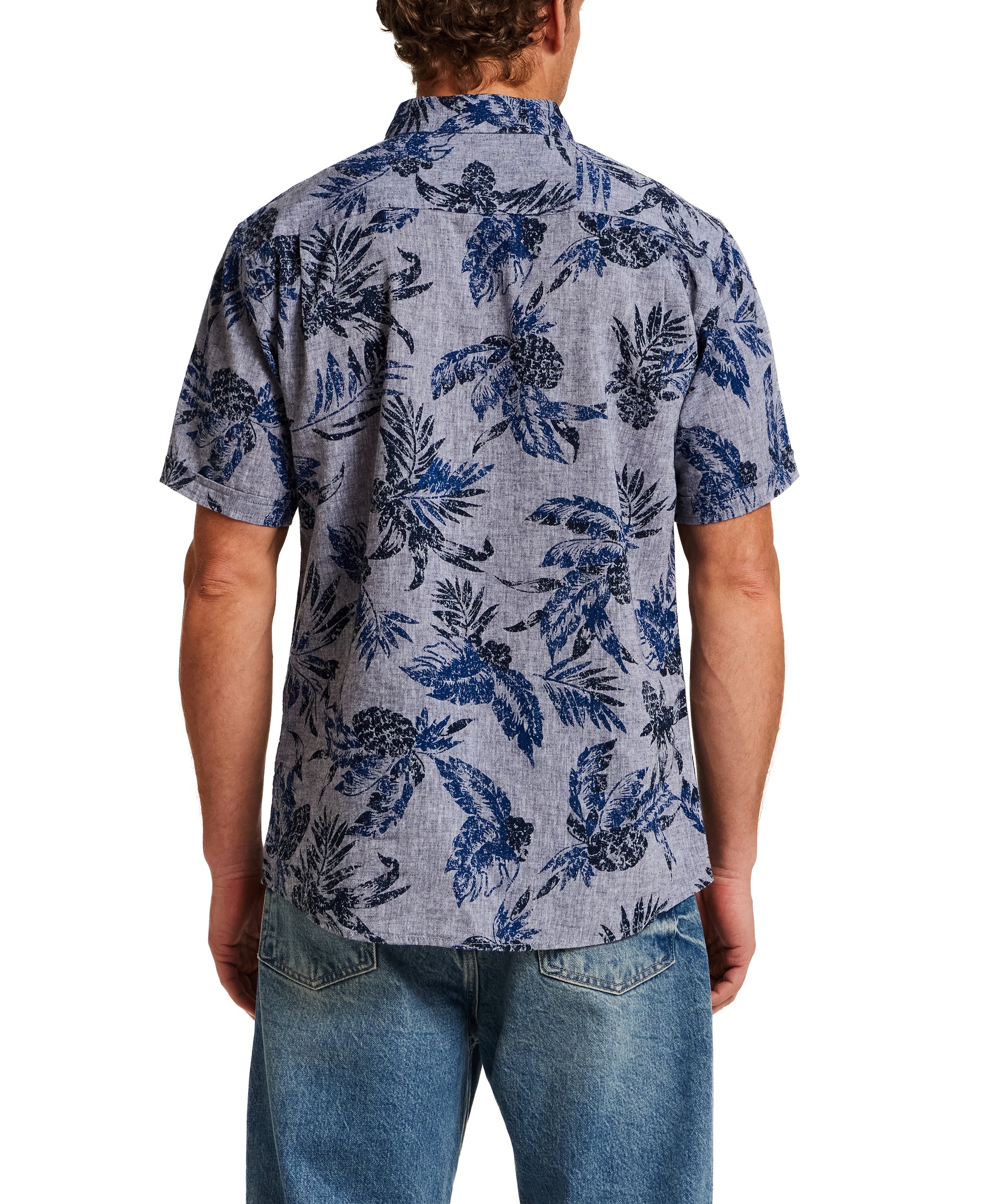 Breezy linen cotton fabric means easy comfort for this classic button-down shirt covered in an abstract floral print.