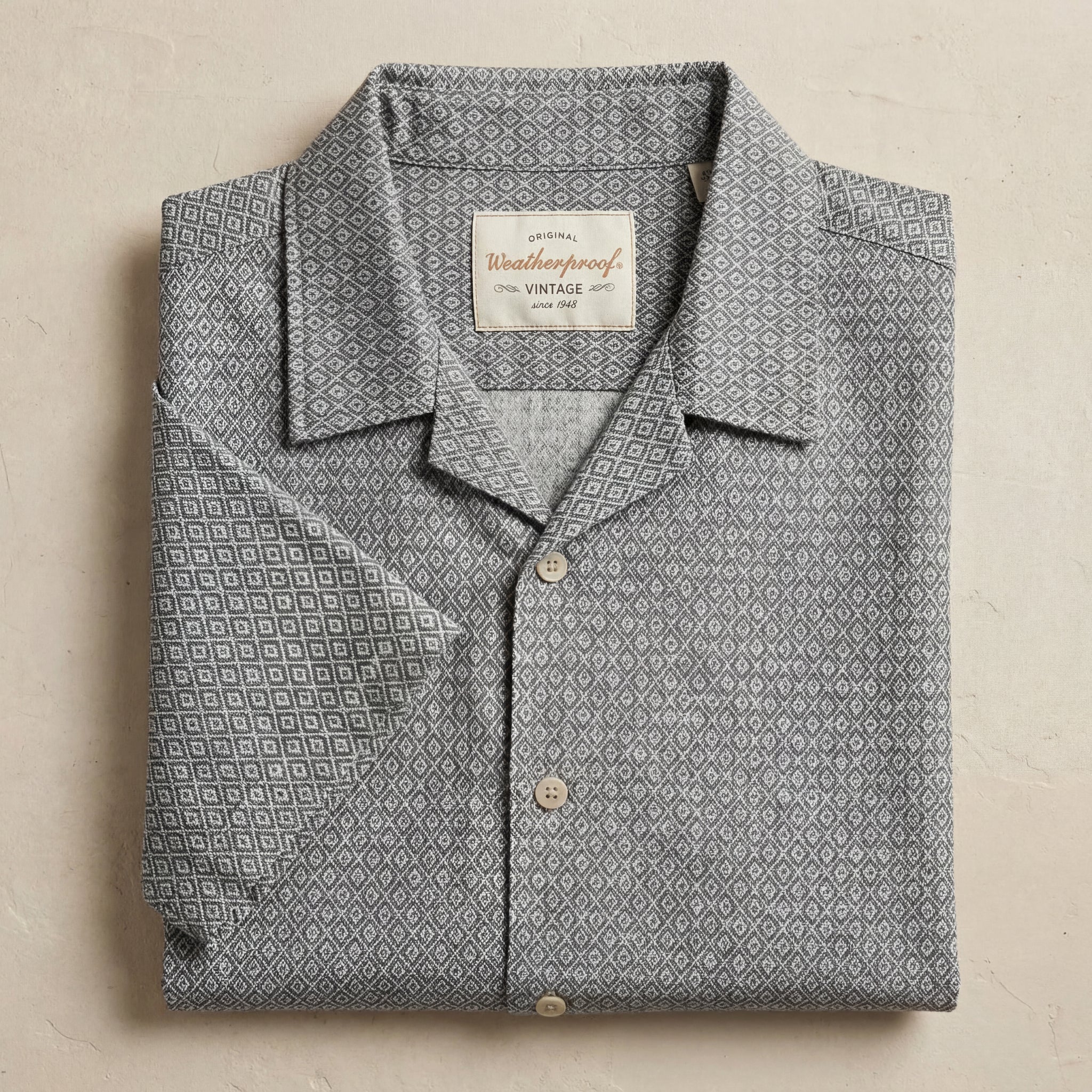 - Detail: Textured jacquard fabric, button up front, resort collar, part of set