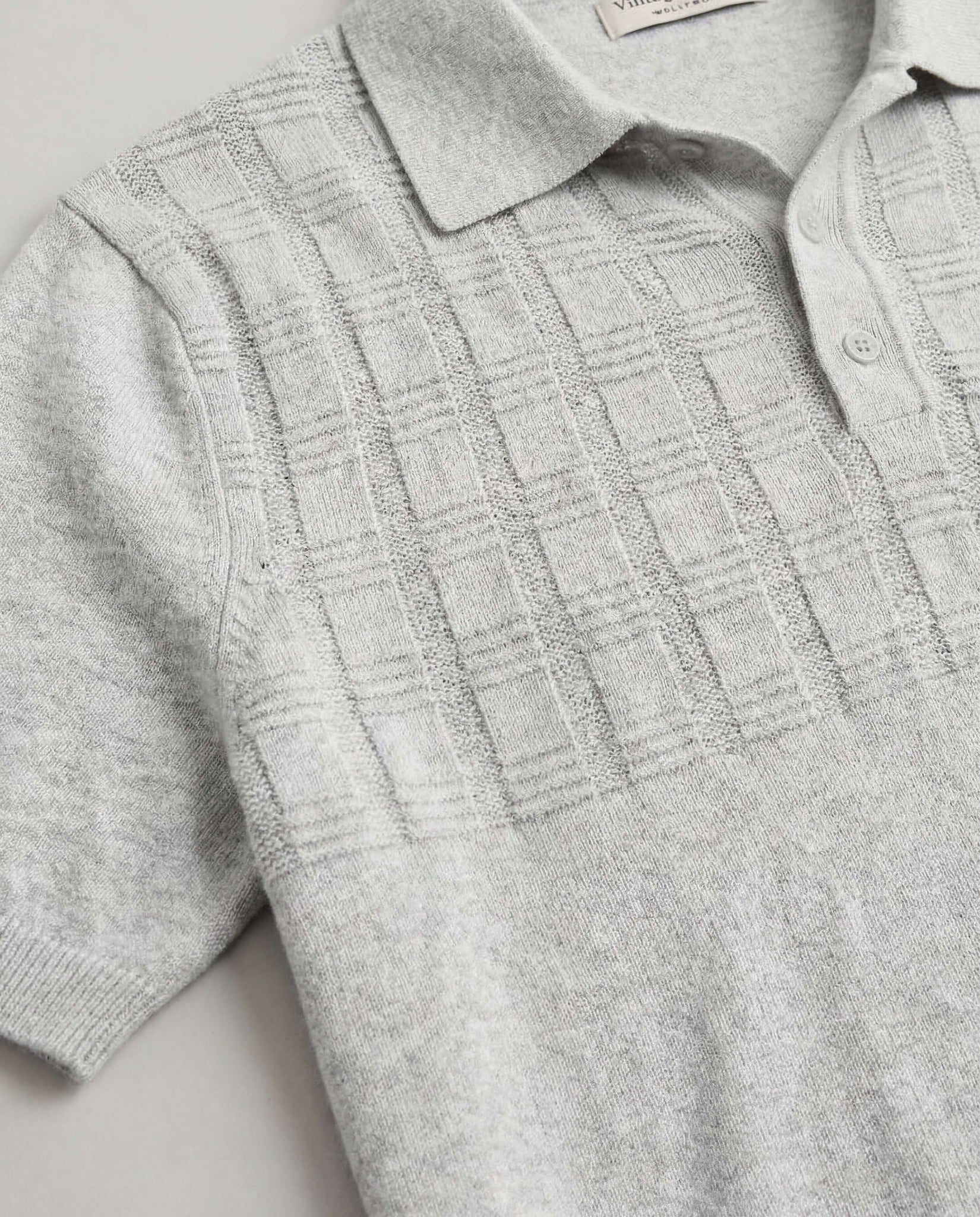 Grid Yoke Polo Sweater in Light Grey
