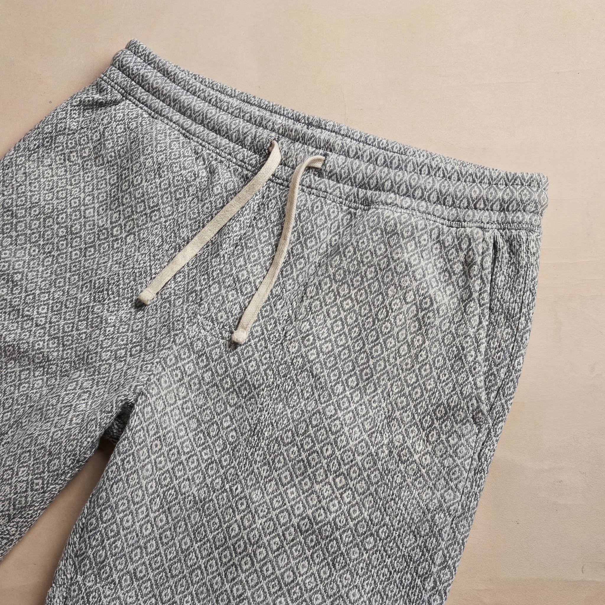 • Detail: 6" inseam, stretch waistband, adjustable drawstring, side slash pockets, part of set