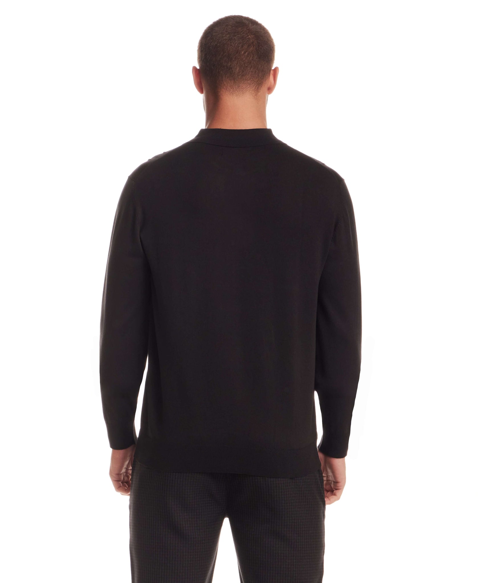 Long Sleeve Polo Sweater in Black