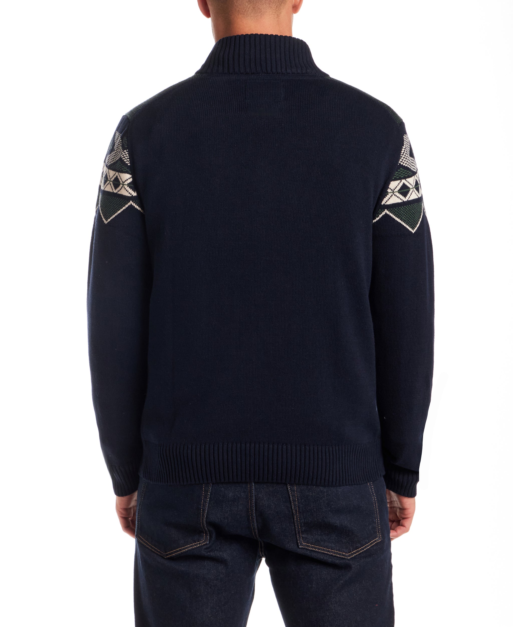 A timeless cold-weather piece, this quarter-zip sweater is knit with a bold Fair Isle pattern across the chest and shoulders. Made from 100% cotton, it delivers both warmth and comfort while keeping its shape through wear.