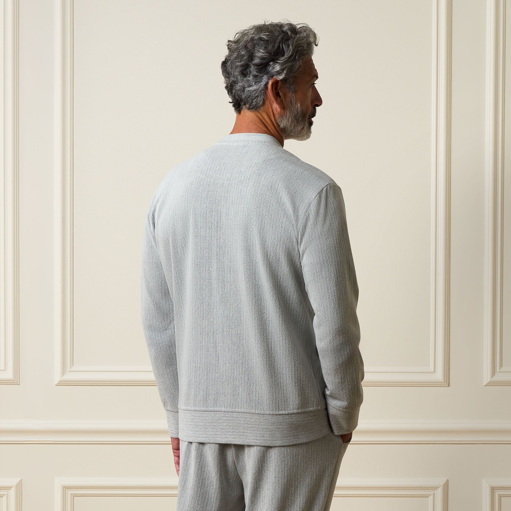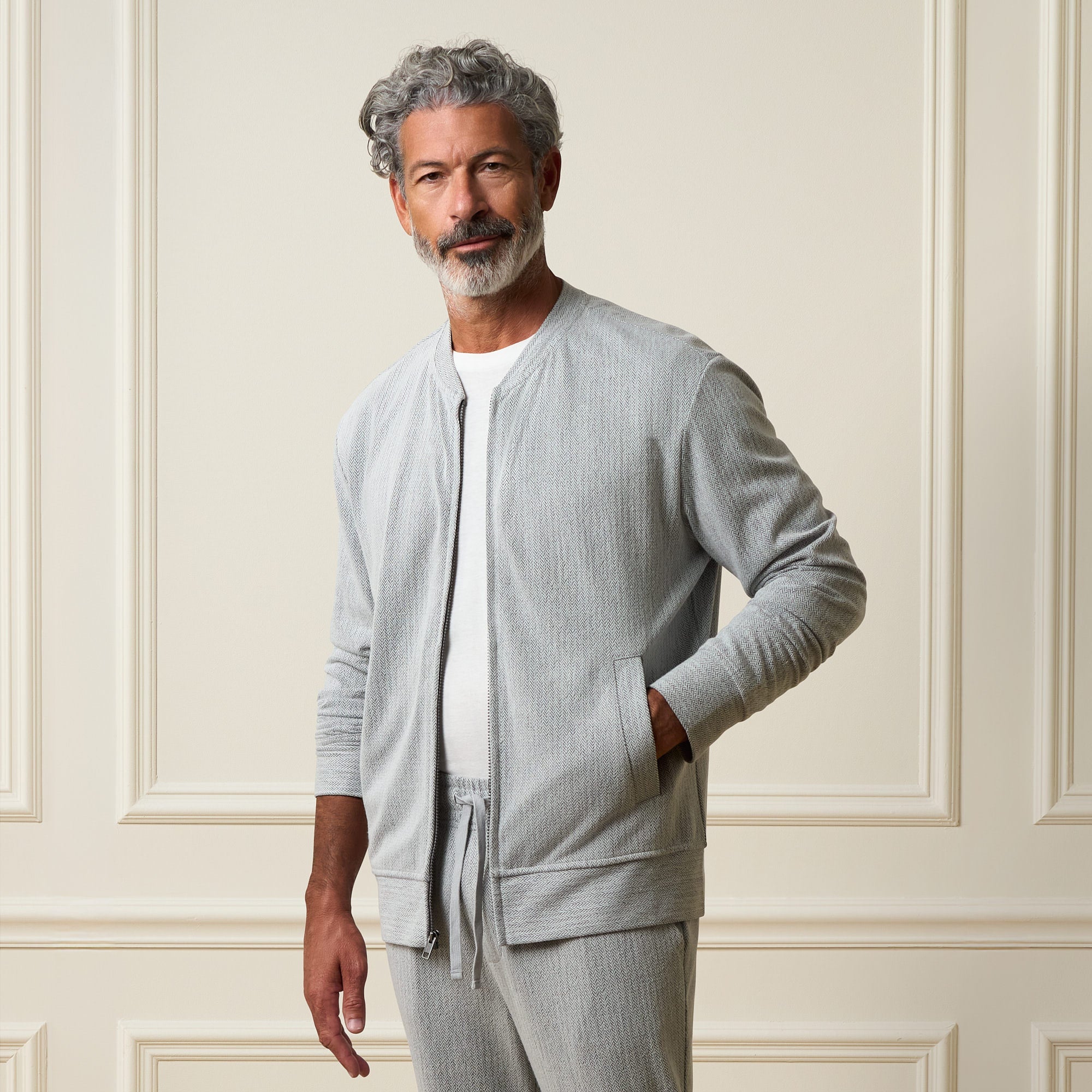 Zip-up bomber jacket with a subtle mini herringbone pattern. A lightweight and versatile layer that adds understated texture and style to any look. Can be worn on its own or paired with the matching pants.