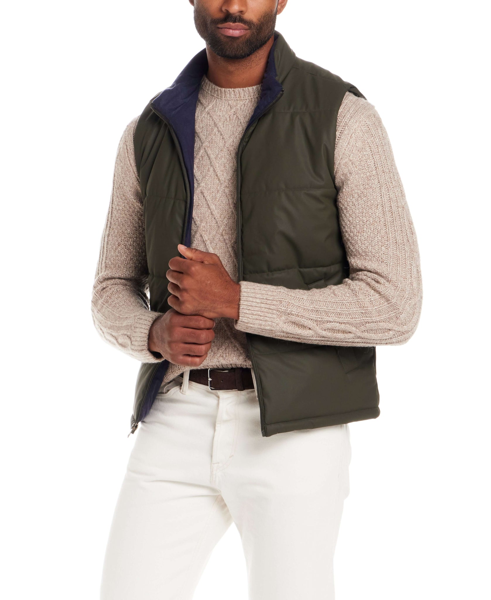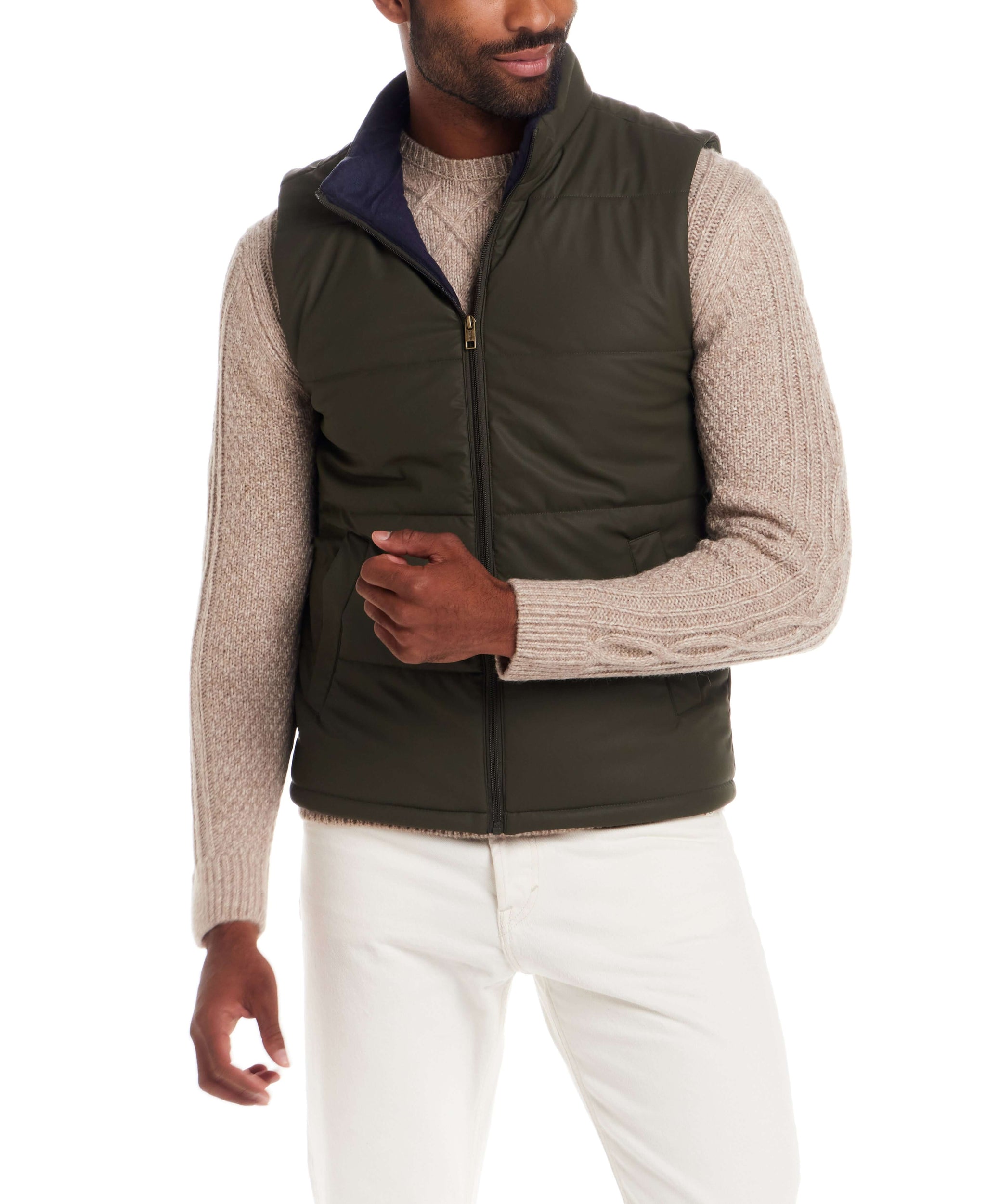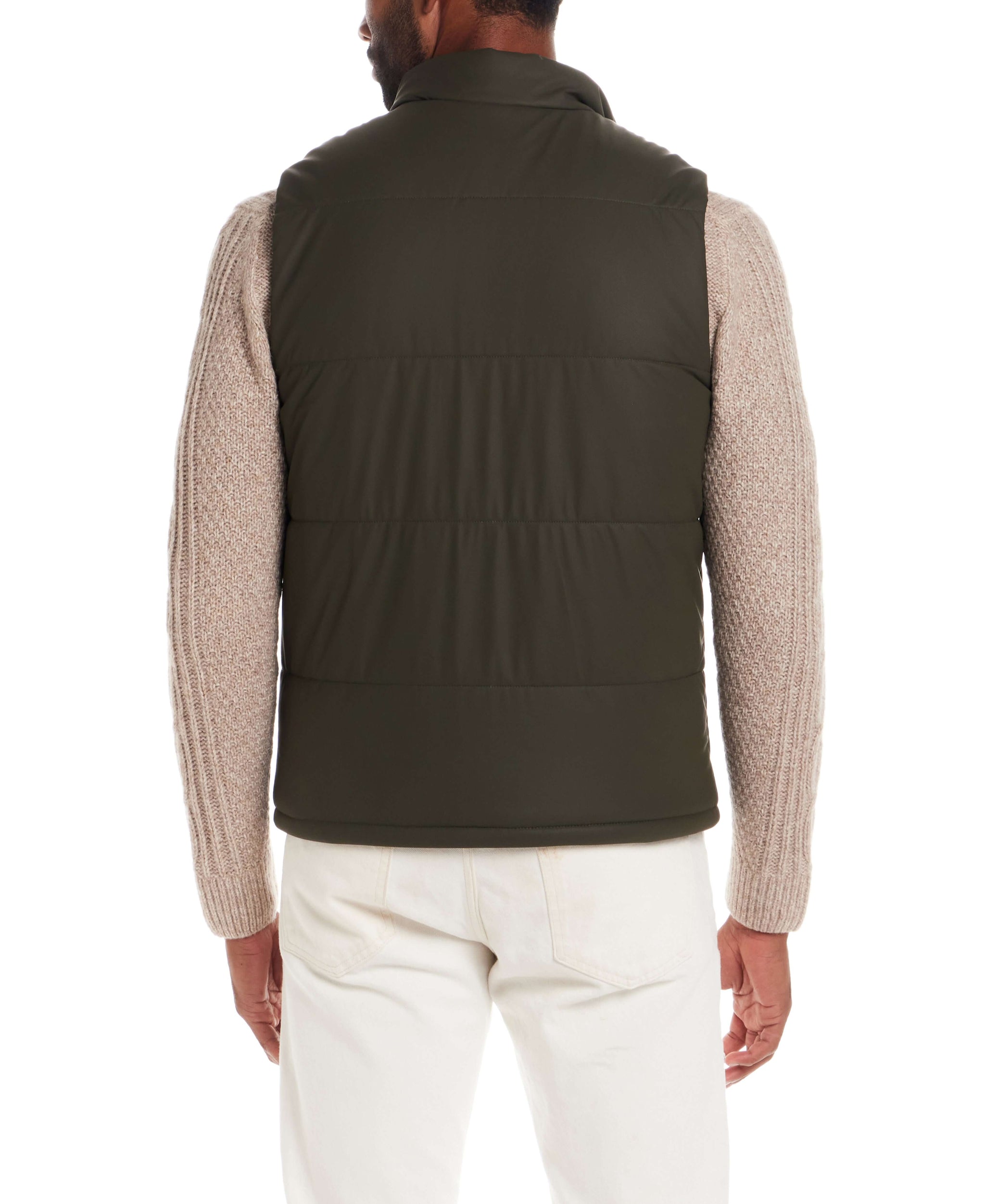 Matte Coated Shell Puffer Vest in Kambaba Olive